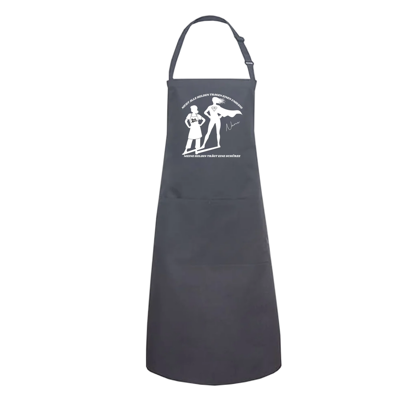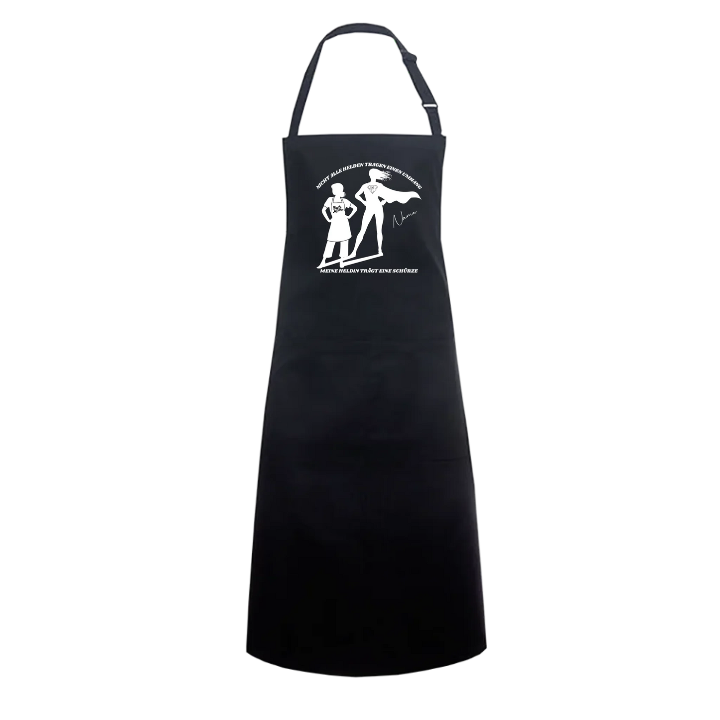 Überrasche Mama mit dieser hochwertigen und personalisierbaren Superheldinnen-Schürze – mit individuellem Namen und Anfangsbuchstaben im Emblem.
